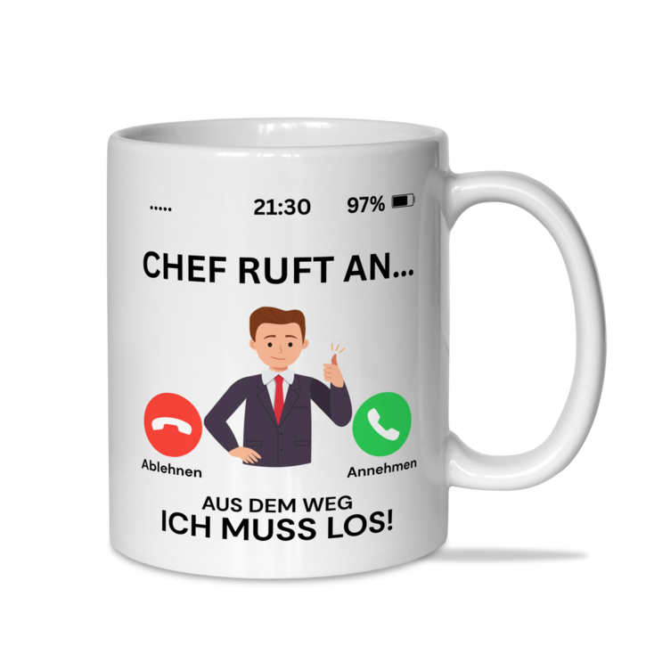 Tasse "Chef ruft an, aus dem Weg, ich muss los"