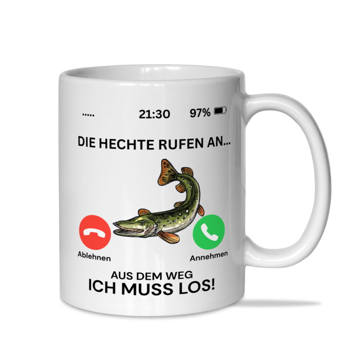 Tasse "Die Hechte rufen an, aus dem Weg, ich muss los"