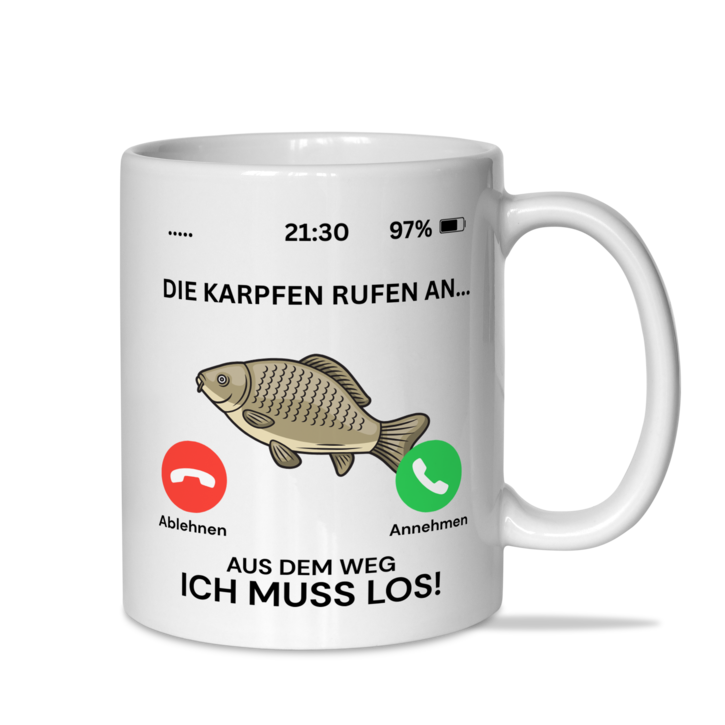 Tasse "Die Karpfen rufen an, aus dem Weg, ich muss los"