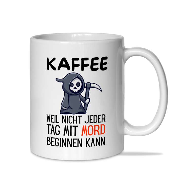 Tasse "Kaffee, weil nicht jeder Tag mit Mord beginnen kann"