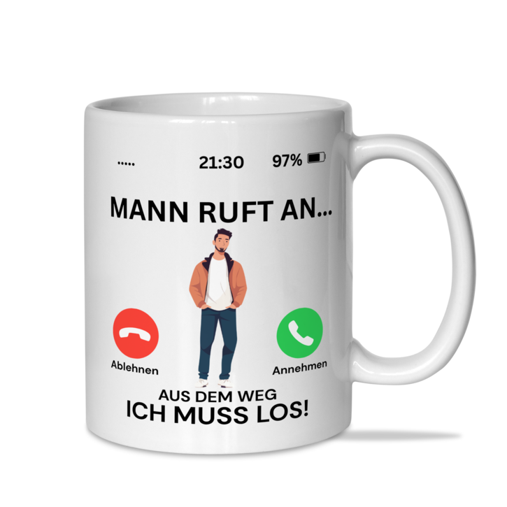 Tasse "Mann ruft an, aus dem Weg, ich muss los"