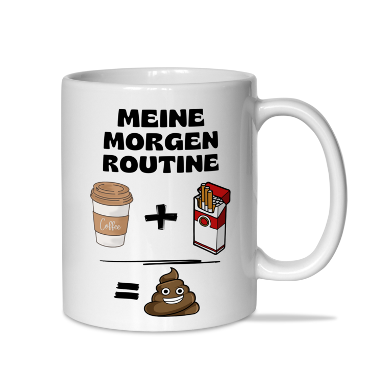 Tasse "Meine Morgenroutine: Kaffee + Kippen = Kacken"