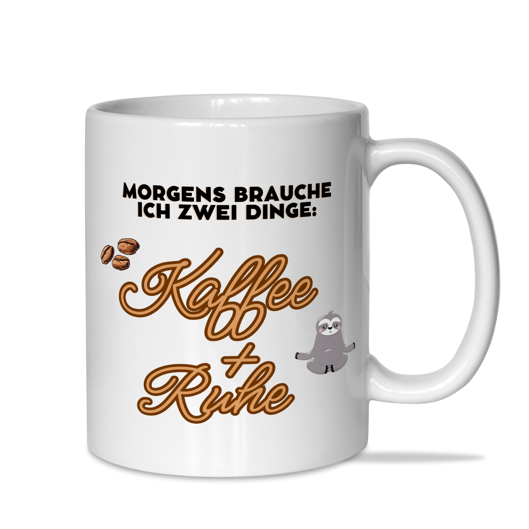 Tasse "Morgens brauche ich zwei Dinge: Kaffee und Ruhe"